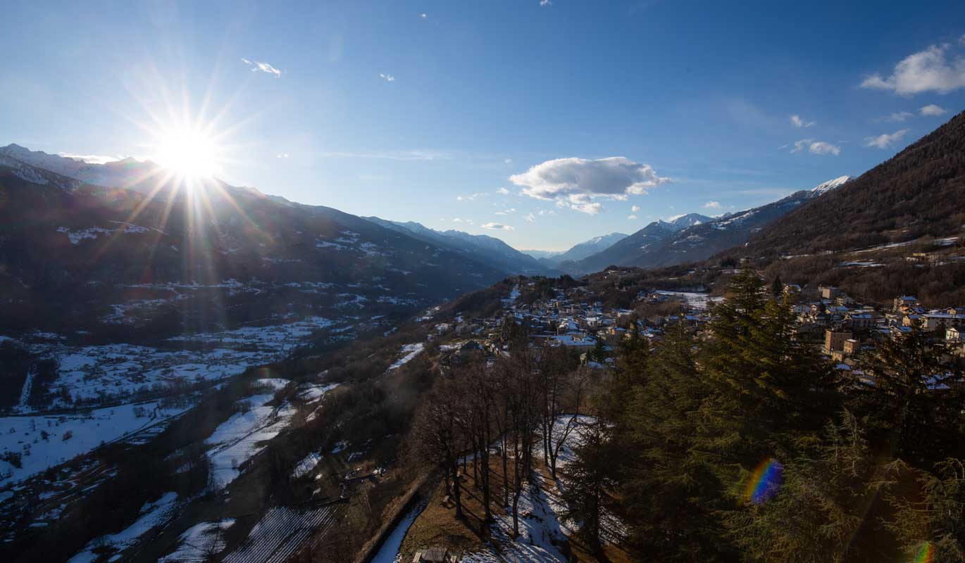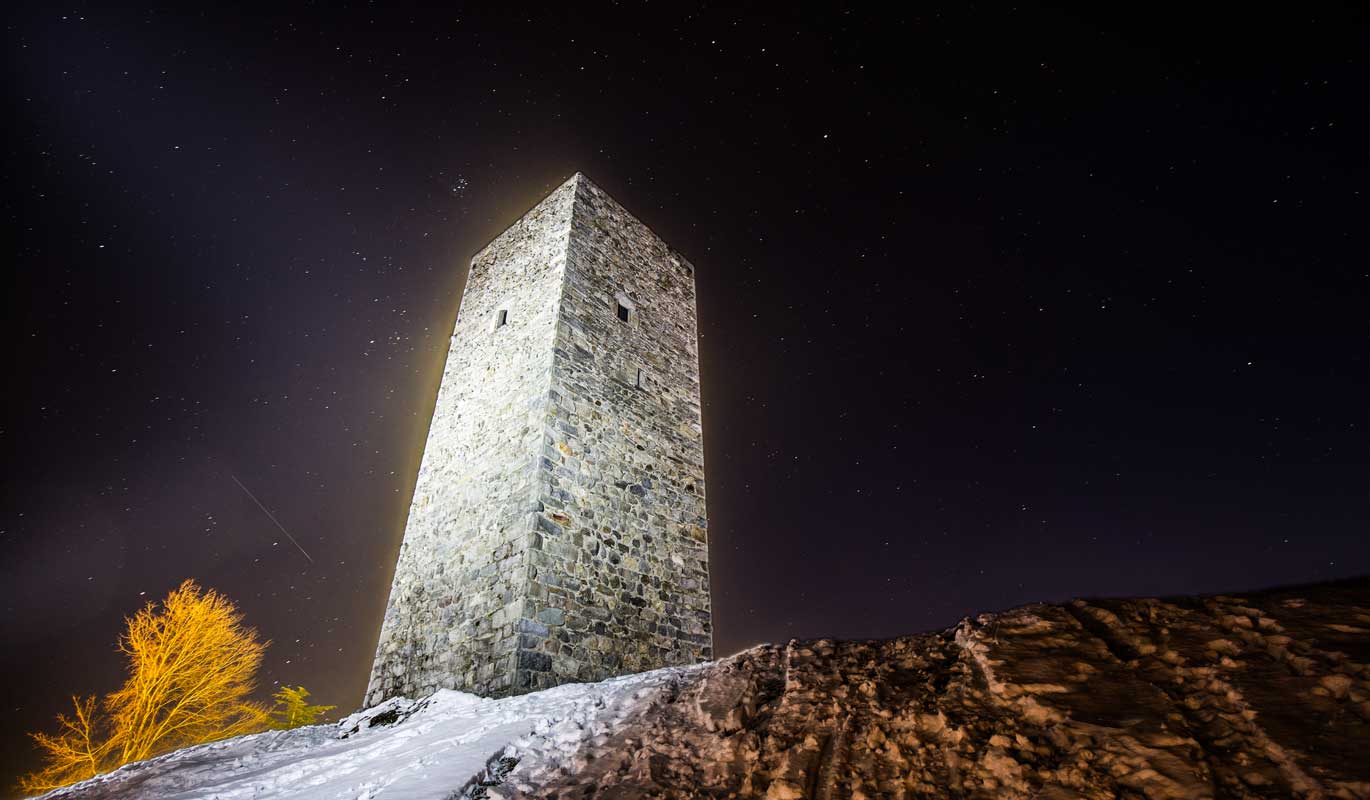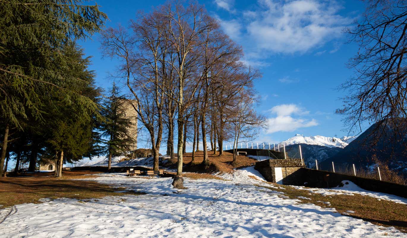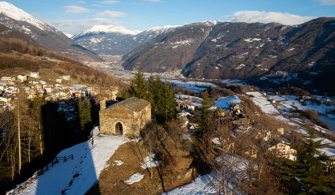 The tower, the symbol of Teglio, is what remains of the medieval castle, the Castrum Tilii, built on the Roman ruins of a previous foundation. Immersed in greenery and sited on a hill, it is a splendid panoramic point. The popular name “Torre de li Beli Miri” in fact derives from the spectacular view that is enjoyed from the balcony at the top, where the gaze can stretch as far as around 60 kilometres. For centuries the tower has been the fulcrum of the Valley’s defence system, together with the Castrum Vetus below, today’s Castelvetro, and the towers of the Orobic slope. The nearby church of Santo Stefano, once the oratorio of the military garrison, is also part of the ancient Castrum Tilii complex.